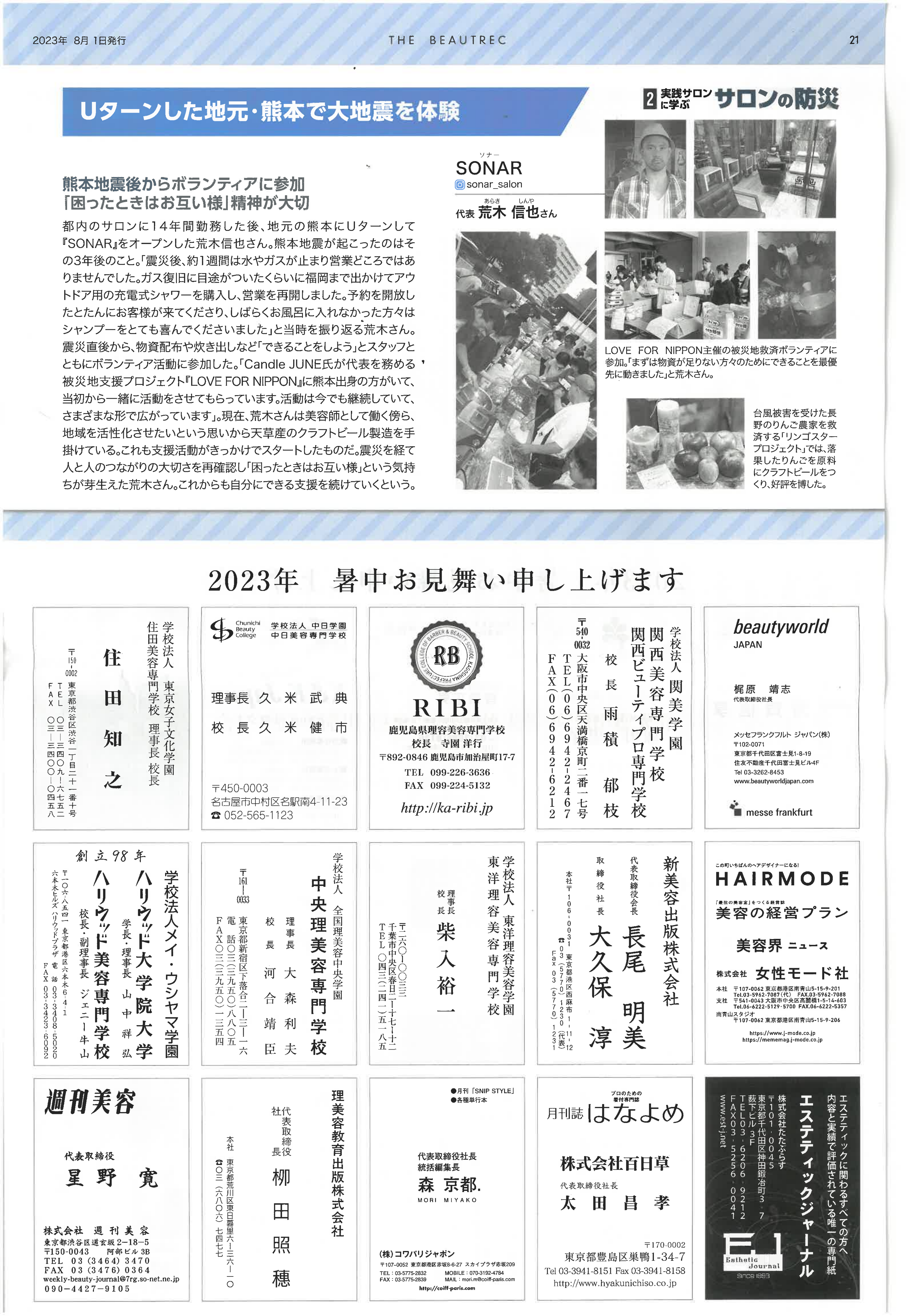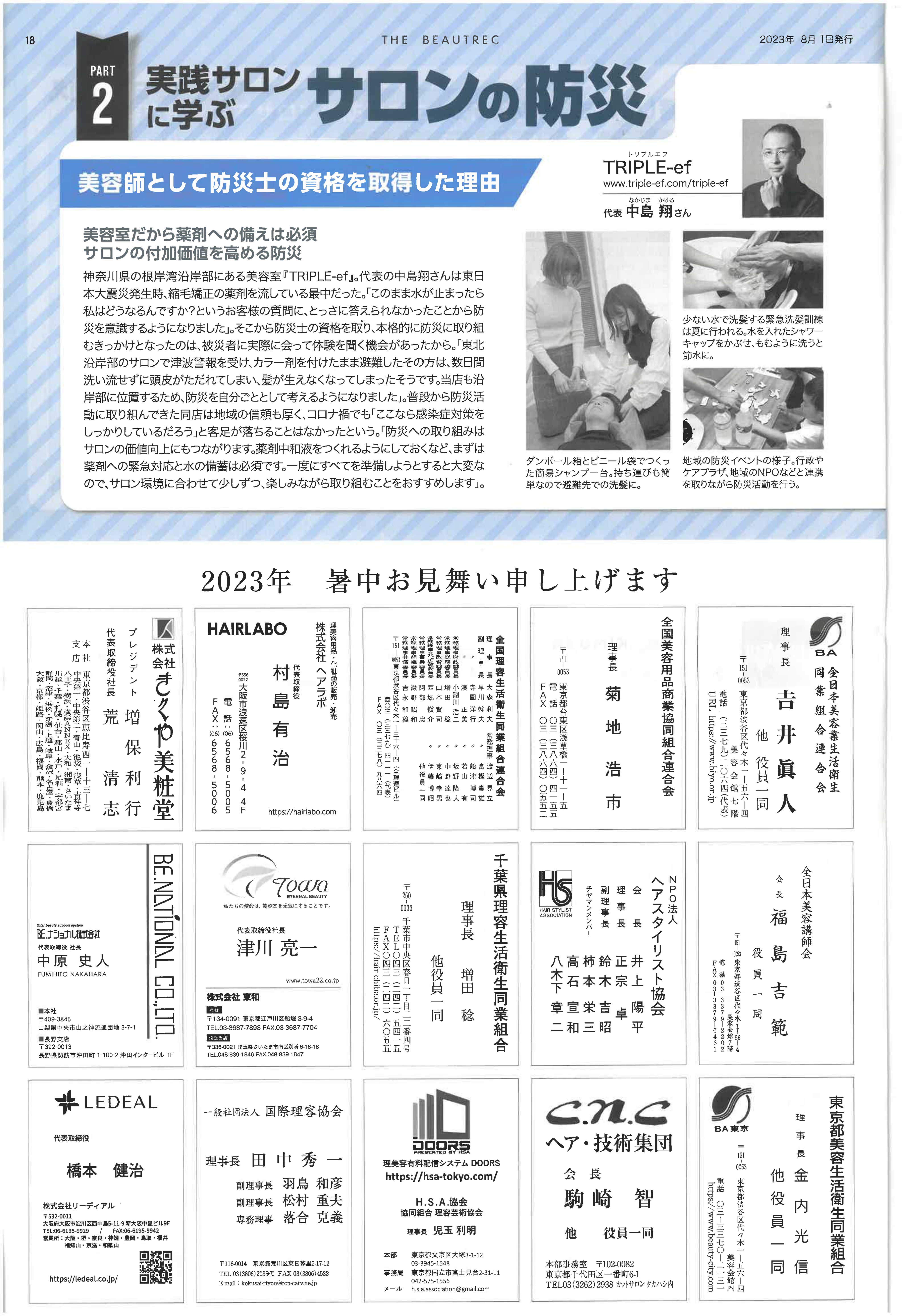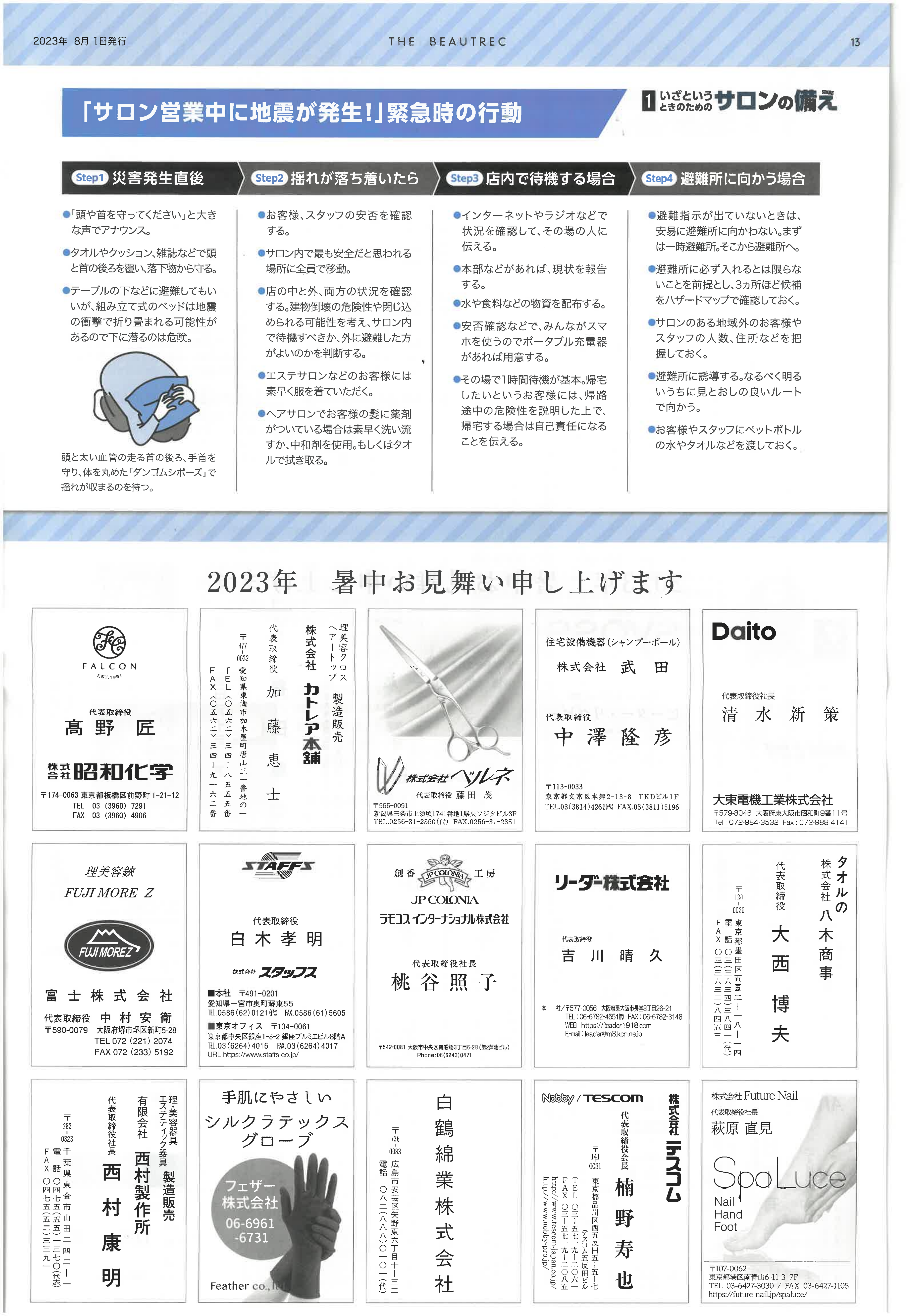 This year marks the 100th anniversary of the Great Kanto Earthquake, which occurred on September 1. In this special feature, we focus on “fire prevention measures in salons” and explore how to enhance safety in the workplace.