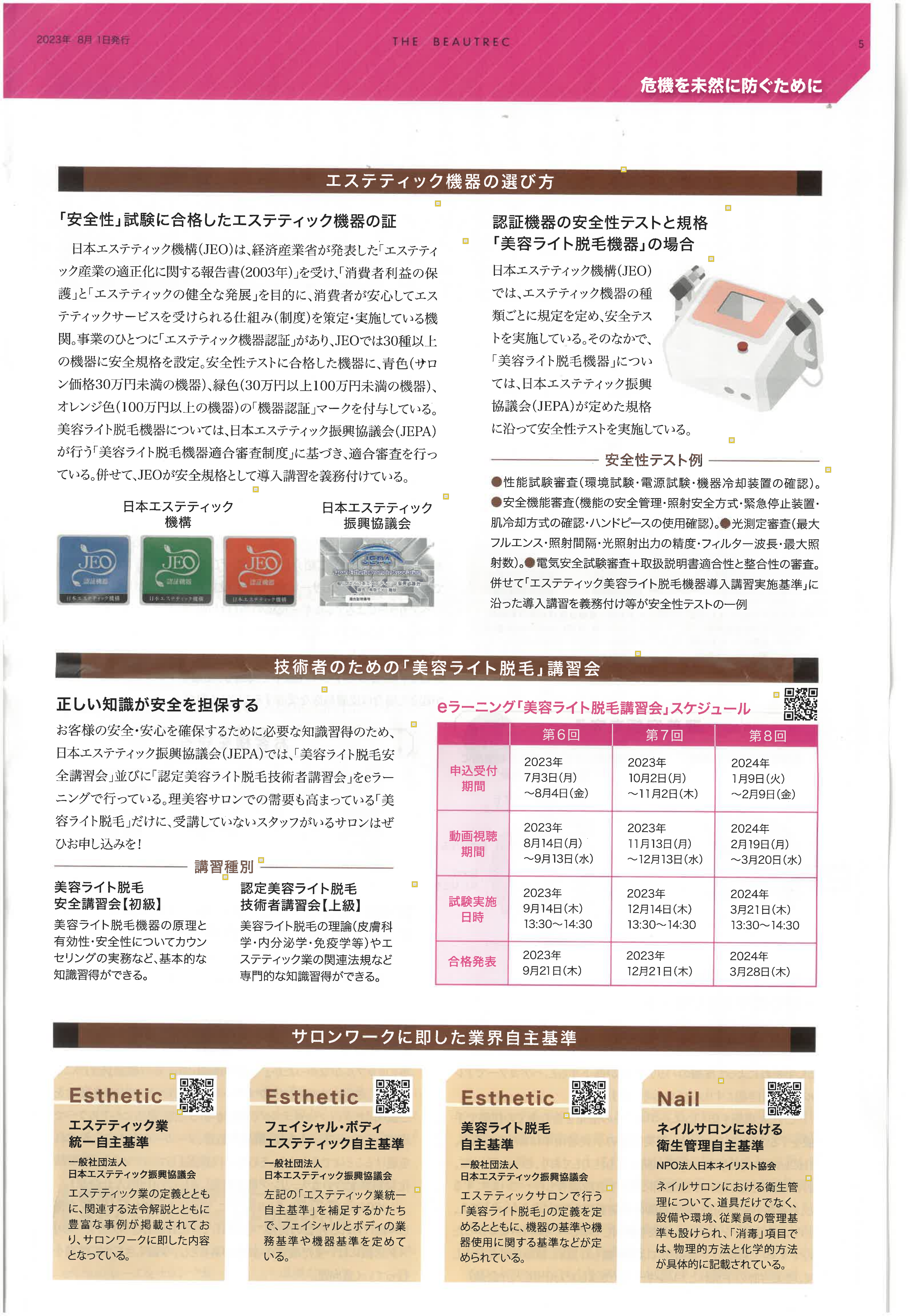 For beauty equipment that does not require restricted use, while the advantage is that “anyone can operate it,” the current reality is that a large number of non-compliant devices flood the market. The organizations responsible for testing and certifying the safety of such equipment are the “Nail Certification Devices” recognized by Japan’s Ministry of Economy, Trade and Industry (METI), and the “Beauty Laser Hair Removal Equipment Compliance Review System” established by the Japan Estheticians and Beauty Advisors Association (JEPA).