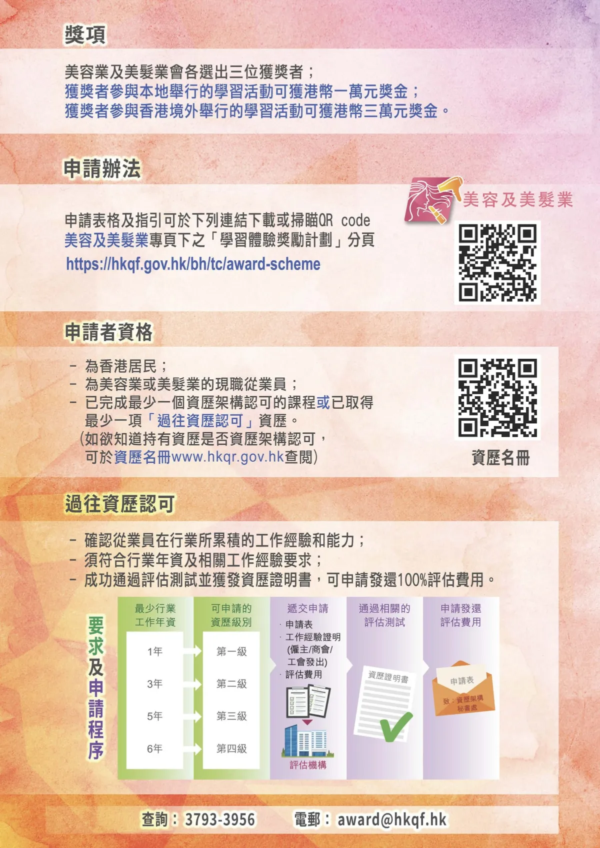獎項:美容業及美髮業會各選出三位獲獎者;